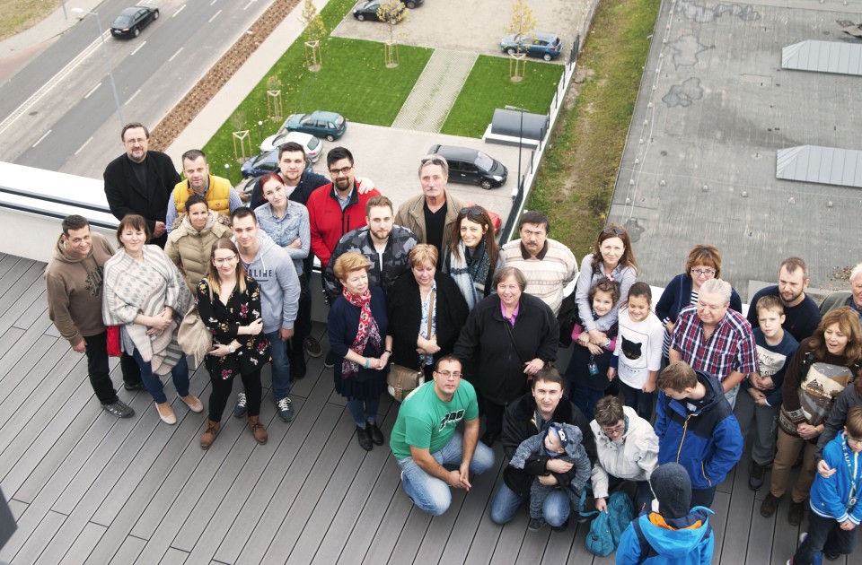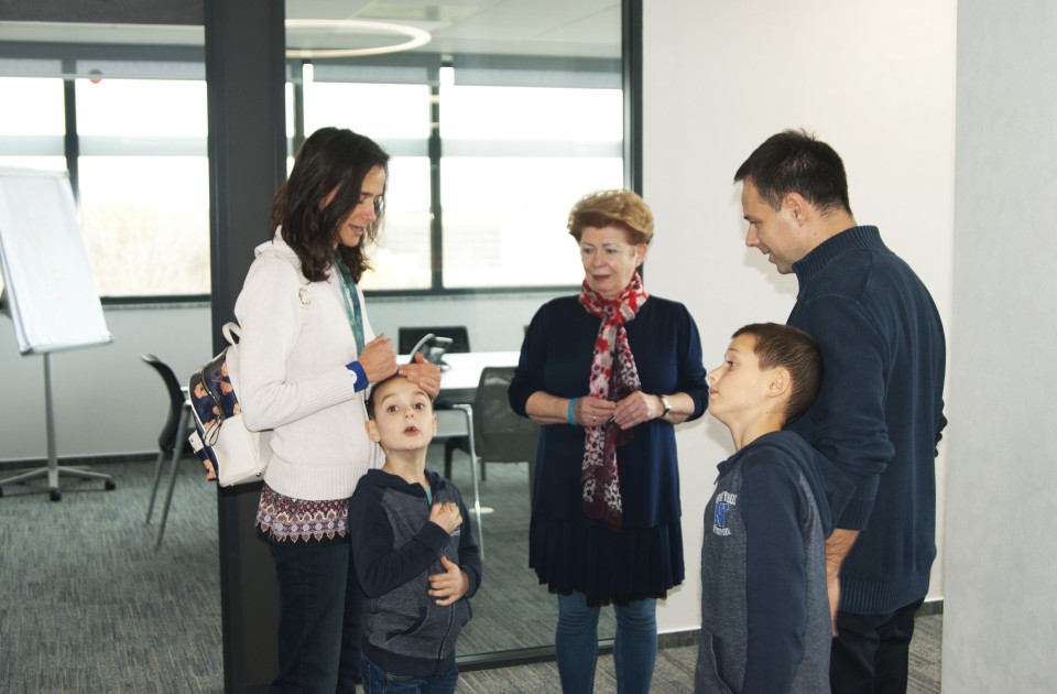 Természetes volt, hogy a beköltözést követő első lehetséges alkalommal munkatársaink családtagjainak is mutassuk meg a házat. November 11-én a teremgarázstól a tetőteraszokig minden arról szólt, hogy kicsik és nagyok, házastársak és szülők beleláthassanak az itt dolgozók hétköznapjaiba. Leülhessenek Anya vagy Apa íróasztalához, kipróbálják a közösségi tereket vagy gyönyörködjenek az irodákból és a teraszokról nyíló panorámában. A csoportokat a NEXON vezetői kísérték végig az épületen, a gyerekeket még külön meglepetés is várta. Az élményt pedig az erre az alkalomra készült Instagram-fal előtt állva is meg lehetett osztani.